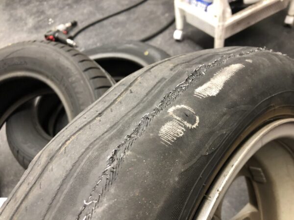 点検したタイヤは内側のワイヤーが見えている状態でした。