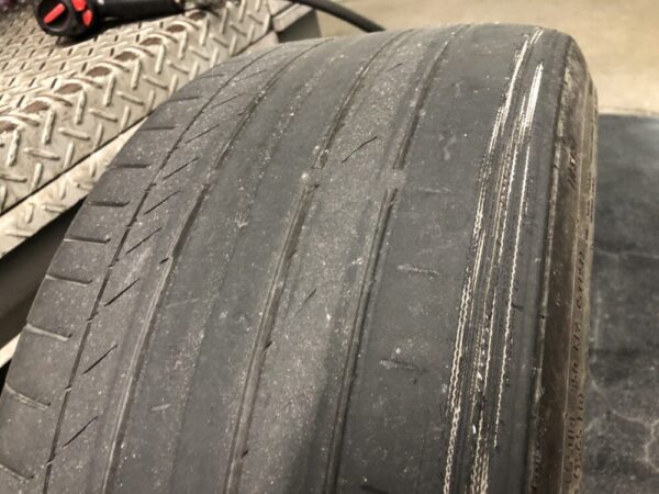 さらに深刻だったのは、**「溝が完全になくなった状態で走り続け、バースト(破裂)してしまった」**というお問い合わせです。 現場でタイヤを拝見すると、表面がツルツルで中のワイヤーが見えていることもありました。こうなると、いつ破裂してもおかしくない「爆弾」を抱えて走っているようなものです。